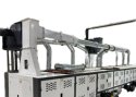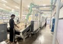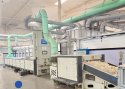 This is a new textile waste recycling line. It can process many types of yarn and fabric waste, like cotton and polyester. Fibers from yarns below 40s can be reused for spinning.