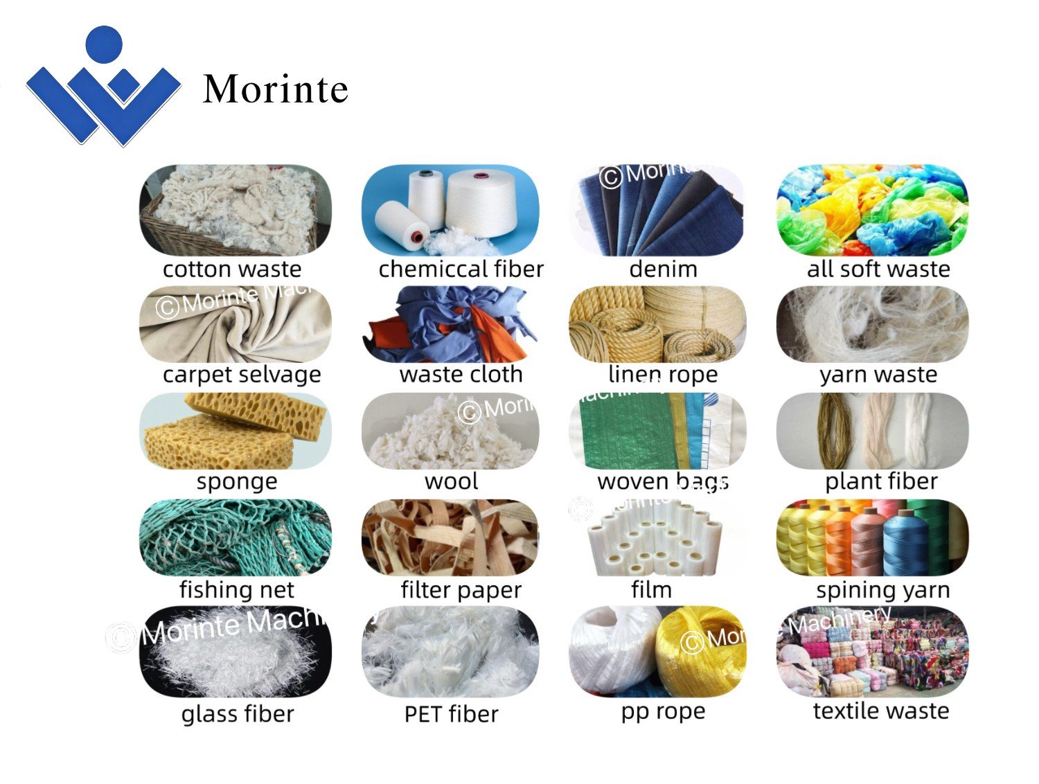3. This model is suitable for processing various types of textile waste, including fabric scraps, cotton wool, yarn, clothing scraps, leather, and non-woven fabrics. Optional strong magnetic separation device can effectively protect the cutting tools from damage caused by metal impurities, further improving the service life of the equipment.
