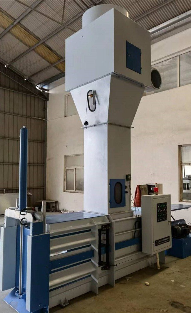 The horizontal baling machine can be used as different request, this with compactor feeding, most used to press dust. This type with fiber collecting machine, this system fixed with fan which used to absorb material to here, wind will be removed through dust cage and make materail dropped directly to the baling box. It is mainly used to bale waste in a cotton mill such as card sweeps and flat strips. It can not only work singly, but also cooperate with a few fiber separators or waste cleaners for an auto-baling